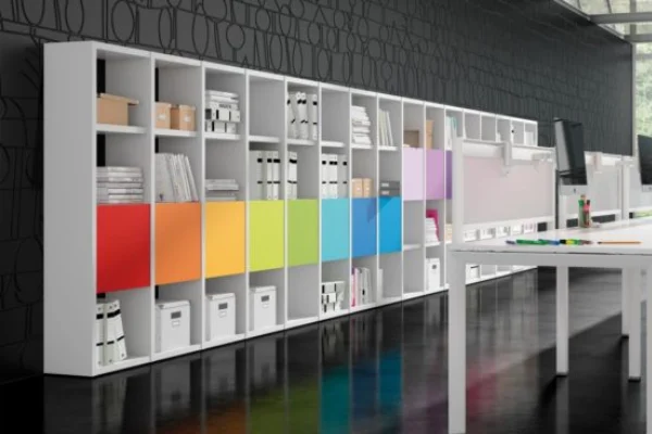 - Estanterías cerradas: Perfectas para mantener documentos importantes protegidos del polvo o para ocultar elementos menos estéticos.